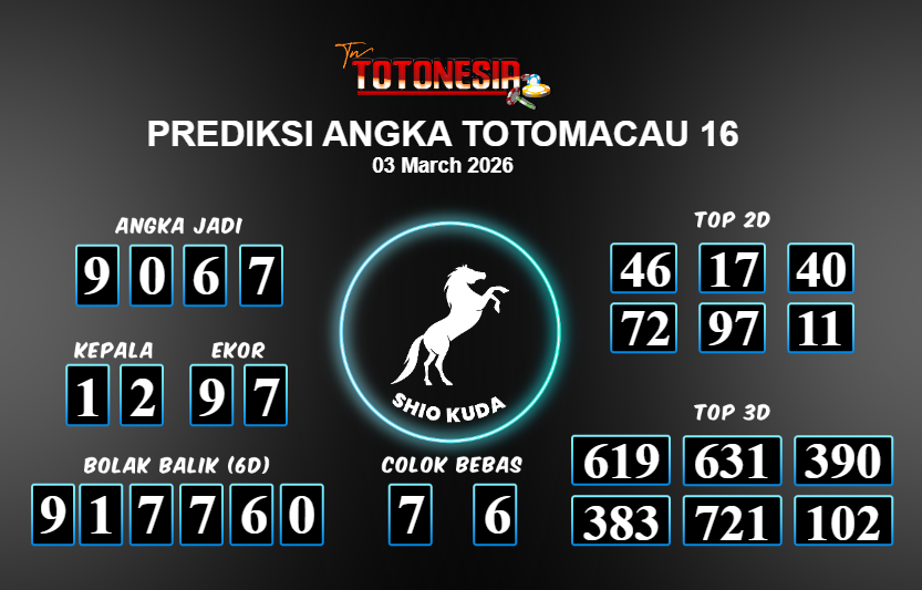 Toto Nesia : Bocoran Prediksi Togel TOTOMACAU 16 Tanggal 03 MARET 2026