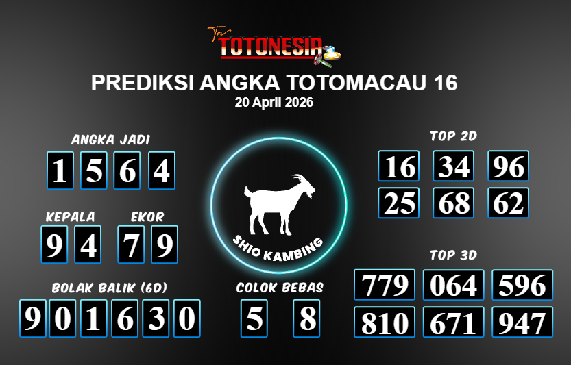 Toto Nesia : Bocoran Prediksi Togel TOTOMACAU 16 Tanggal 20 APRIL 2026