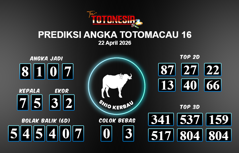 Toto Nesia : Bocoran Prediksi Togel TOTOMACAU 16 Tanggal 22 APRIL 2026