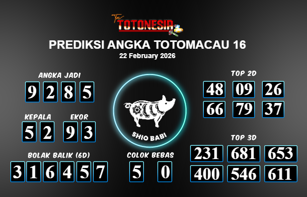 Toto Nesia : Bocoran Prediksi Togel TOTOMACAU 16 Tanggal 22 FEBUARI 2026