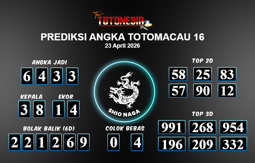Toto Nesia : Bocoran Prediksi Togel TOTOMACAU 16 Tanggal 23 APRIL 2026