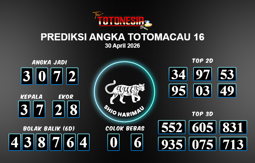 Toto Nesia : Bocoran Prediksi Togel TOTOMACAU 16 Tanggal 30 APRIL 2026