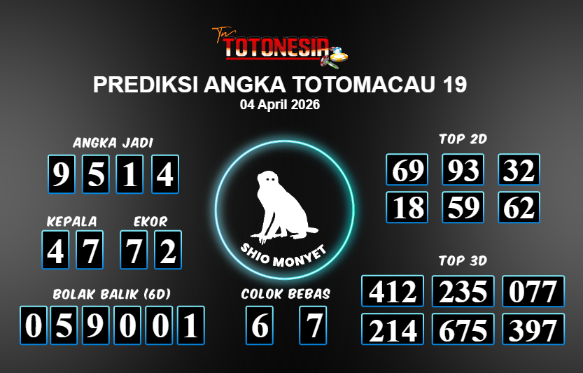 Prediksi TOTOMACAU 19 adalah perhitungan nomor togel unggulan dari agen suhu togel yang menyajikan angka prediksi paling akurat, sehingga memberikan banyak keuntungan saat bermain di pasar togel TOTOMACAU 19 . TotoNesia adalah prediksi dengan rasio kemenangan tertinggi di Indonesia. Sebagai penyedia togel yang dapat dipercaya, kami bertekad untuk memberikan ramalan togel yang handal dengan hadiah terbesarnya. Maka dari itu, jangan sampai terlewatkan prediksi bandar togel dengan hadiah terbanyak bet 100 dari pasar togel terbaik TOTOMACAU 19 Daftar sekarang juga di bandar.