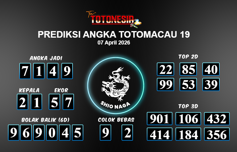 Prediksi TOTOMACAU 19 adalah perhitungan nomor togel unggulan dari agen suhu togel yang menyajikan angka prediksi paling akurat, sehingga memberikan banyak keuntungan saat bermain di pasar togel TOTOMACAU 19 . TotoNesia adalah prediksi dengan rasio kemenangan tertinggi di Indonesia. Sebagai penyedia togel yang dapat dipercaya, kami bertekad untuk memberikan ramalan togel yang handal dengan hadiah terbesarnya. Maka dari itu, jangan sampai terlewatkan prediksi bandar togel dengan hadiah terbanyak bet 100 dari pasar togel terbaik TOTOMACAU 19 Daftar sekarang juga di bandar.