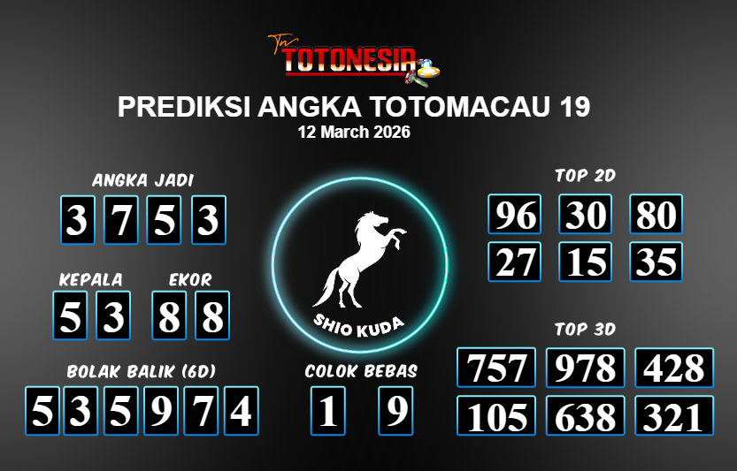Toto Nesia : Bocoran Prediksi Togel TOTOMACAU 19 Tanggal 12 MARET 2026