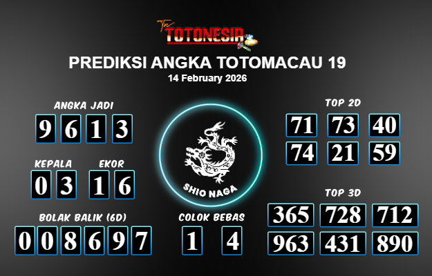 Toto Nesia : Bocoran Prediksi Togel TOTOMACAU 19 Tanggal 14 FEBUARI 2026