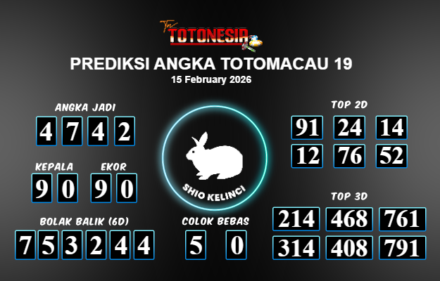 Prediksi TOTOMACAU 19 adalah perhitungan nomor togel unggulan dari agen suhu togel yang menyajikan angka prediksi paling akurat, sehingga memberikan banyak keuntungan saat bermain di pasar togel TOTOMACAU 19 . TotoNesia adalah prediksi dengan rasio kemenangan tertinggi di Indonesia. Sebagai penyedia togel yang dapat dipercaya, kami bertekad untuk memberikan ramalan togel yang handal dengan hadiah terbesarnya. Maka dari itu, jangan sampai terlewatkan prediksi bandar togel dengan hadiah terbanyak bet 100 dari pasar togel terbaik TOTOMACAU 19 Daftar sekarang juga di bandar.