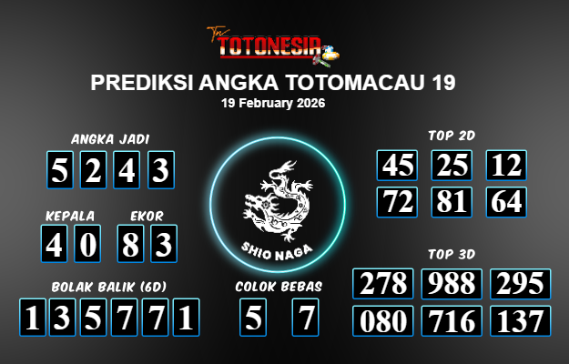 Toto Nesia : Bocoran Prediksi Togel TOTOMACAU 19 Tanggal 19 FEBUARI 2026