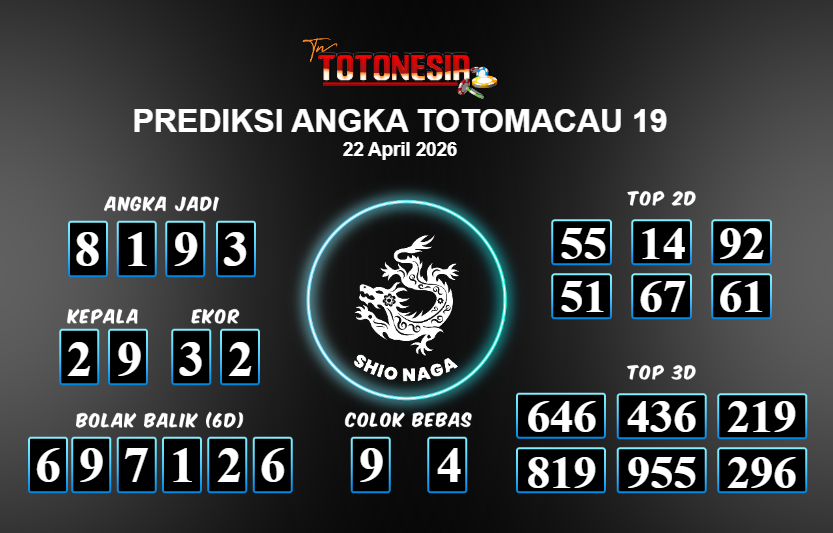 Prediksi TOTOMACAU 19 adalah perhitungan nomor togel unggulan dari agen suhu togel yang menyajikan angka prediksi paling akurat, sehingga memberikan banyak keuntungan saat bermain di pasar togel TOTOMACAU 19 . TotoNesia adalah prediksi dengan rasio kemenangan tertinggi di Indonesia. Sebagai penyedia togel yang dapat dipercaya, kami bertekad untuk memberikan ramalan togel yang handal dengan hadiah terbesarnya. Maka dari itu, jangan sampai terlewatkan prediksi bandar togel dengan hadiah terbanyak bet 100 dari pasar togel terbaik TOTOMACAU 19 Daftar sekarang juga di bandar.