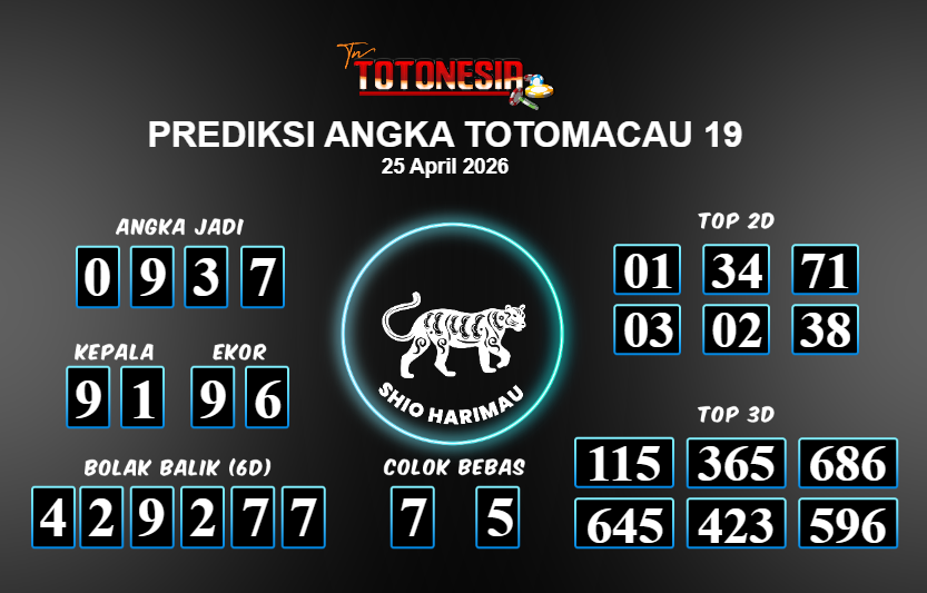 Prediksi TOTOMACAU 19 adalah perhitungan nomor togel unggulan dari agen suhu togel yang menyajikan angka prediksi paling akurat, sehingga memberikan banyak keuntungan saat bermain di pasar togel TOTOMACAU 19 . TotoNesia adalah prediksi dengan rasio kemenangan tertinggi di Indonesia. Sebagai penyedia togel yang dapat dipercaya, kami bertekad untuk memberikan ramalan togel yang handal dengan hadiah terbesarnya. Maka dari itu, jangan sampai terlewatkan prediksi bandar togel dengan hadiah terbanyak bet 100 dari pasar togel terbaik TOTOMACAU 19 Daftar sekarang juga di bandar.