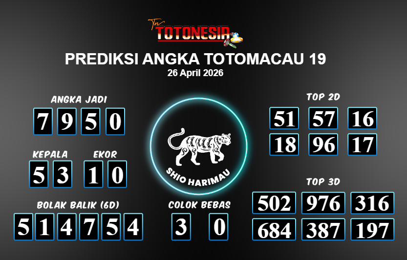 Prediksi TOTOMACAU 19 adalah perhitungan nomor togel unggulan dari agen suhu togel yang menyajikan angka prediksi paling akurat, sehingga memberikan banyak keuntungan saat bermain di pasar togel TOTOMACAU 19 . TotoNesia adalah prediksi dengan rasio kemenangan tertinggi di Indonesia. Sebagai penyedia togel yang dapat dipercaya, kami bertekad untuk memberikan ramalan togel yang handal dengan hadiah terbesarnya. Maka dari itu, jangan sampai terlewatkan prediksi bandar togel dengan hadiah terbanyak bet 100 dari pasar togel terbaik TOTOMACAU 19 Daftar sekarang juga di bandar.