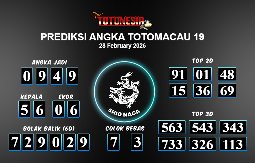 Toto Nesia : Bocoran Prediksi Togel TOTOMACAU 19 Tanggal 28 FEBUARI 2026