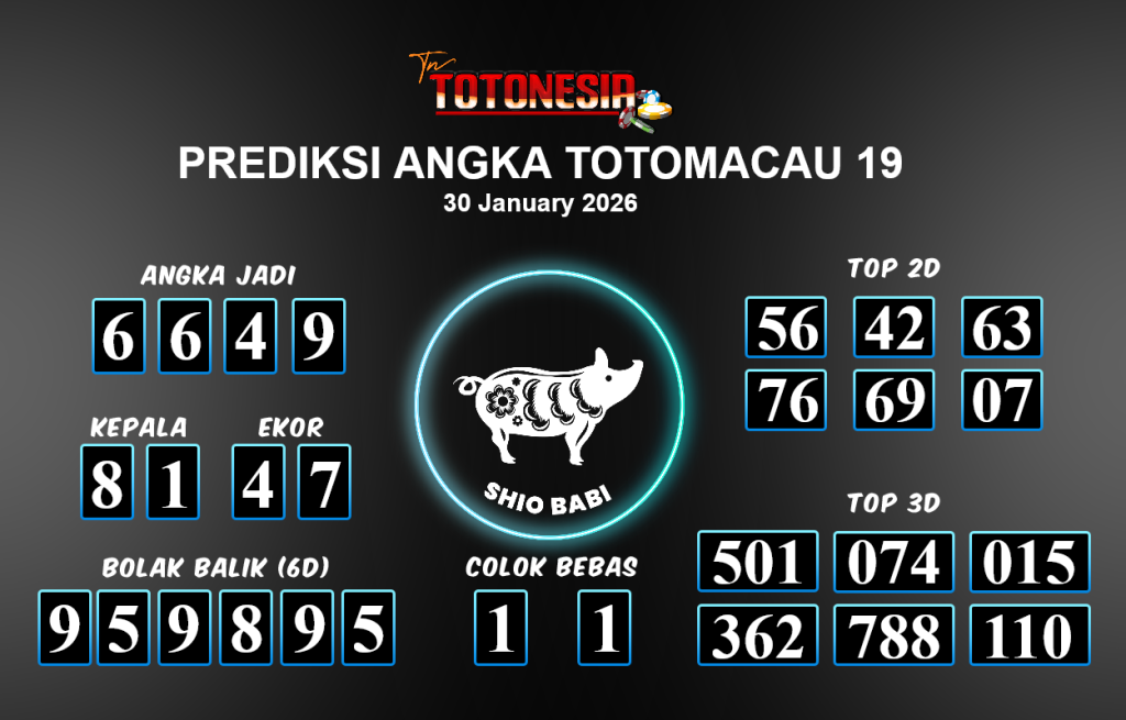 Toto Nesia : Bocoran Prediksi Togel TOTOMACAU 19 Tanggal 30 JANUARI 2026