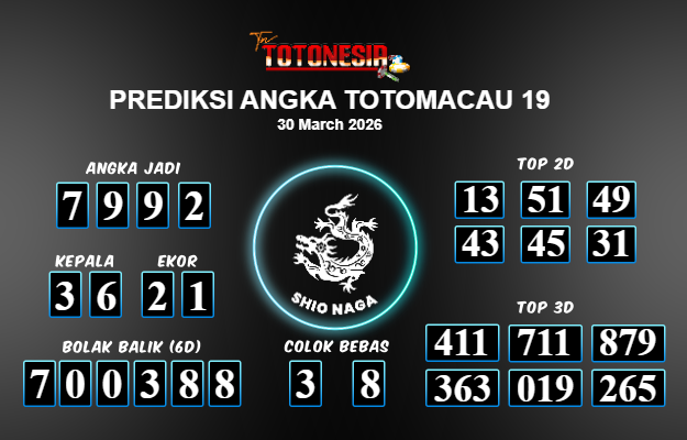 Prediksi TOTOMACAU 19 adalah perhitungan nomor togel unggulan dari agen suhu togel yang menyajikan angka prediksi paling akurat, sehingga memberikan banyak keuntungan saat bermain di pasar togel TOTOMACAU 19 . TotoNesia adalah prediksi dengan rasio kemenangan tertinggi di Indonesia. Sebagai penyedia togel yang dapat dipercaya, kami bertekad untuk memberikan ramalan togel yang handal dengan hadiah terbesarnya. Maka dari itu, jangan sampai terlewatkan prediksi bandar togel dengan hadiah terbanyak bet 100 dari pasar togel terbaik TOTOMACAU 19 Daftar sekarang juga di bandar.