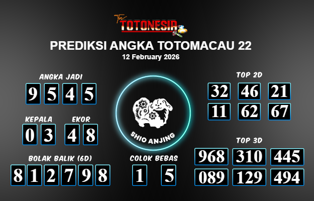 Toto Nesia : Bocoran Prediksi Togel TOTOMACAU 22 Tanggal 12 FEBUARI 2026