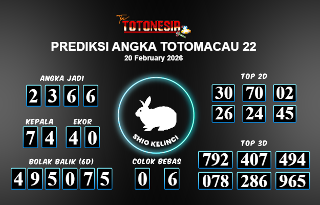 Toto Nesia : Bocoran Prediksi Togel TOTOMACAU 22 Tanggal 20 FEBUARI 2026
