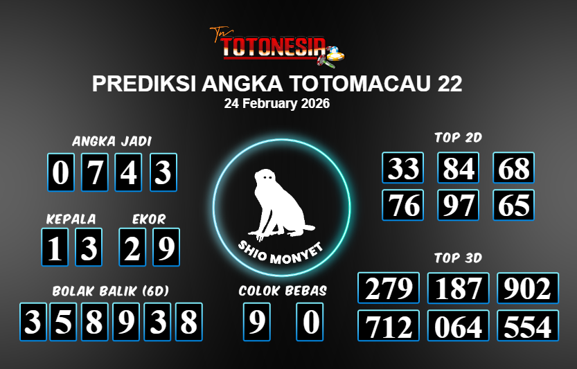Toto Nesia : Bocoran Prediksi Togel TOTOMACAU 22 Tanggal 24 FEBUARI 2026