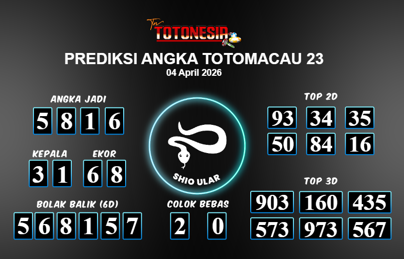 Toto Nesia : Bocoran Prediksi Togel TOTOMACAU 23 Tanggal 04 APRIL 2026