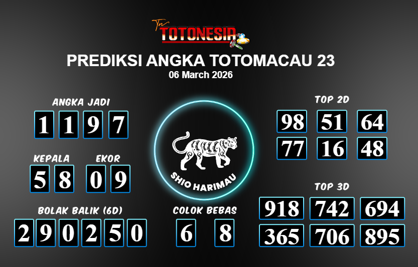 Toto Nesia : Bocoran Prediksi Togel TOTOMACAU 23 Tanggal 06 MARET 2026