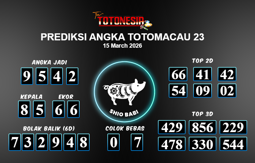 Toto Nesia : Bocoran Prediksi Togel TOTOMACAU 23 Tanggal 15 MARET 2026
