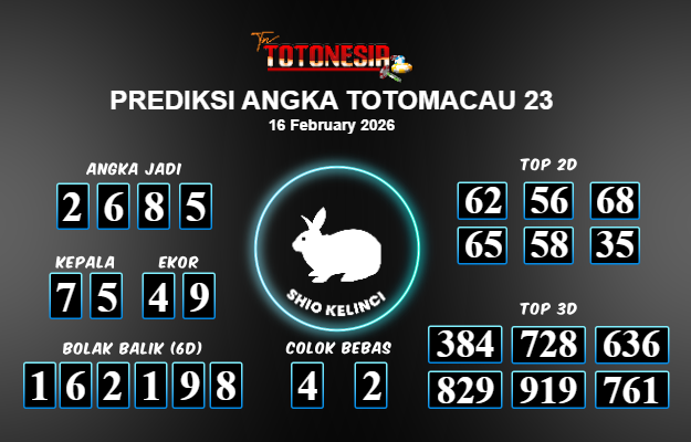 Toto Nesia : Bocoran Prediksi Togel TOTOMACAU 23 Tanggal 16 FEBUARI 2026