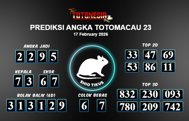 Toto Nesia : Bocoran Prediksi Togel TOTOMACAU 23 Tanggal 17 FEBUARI 2026
