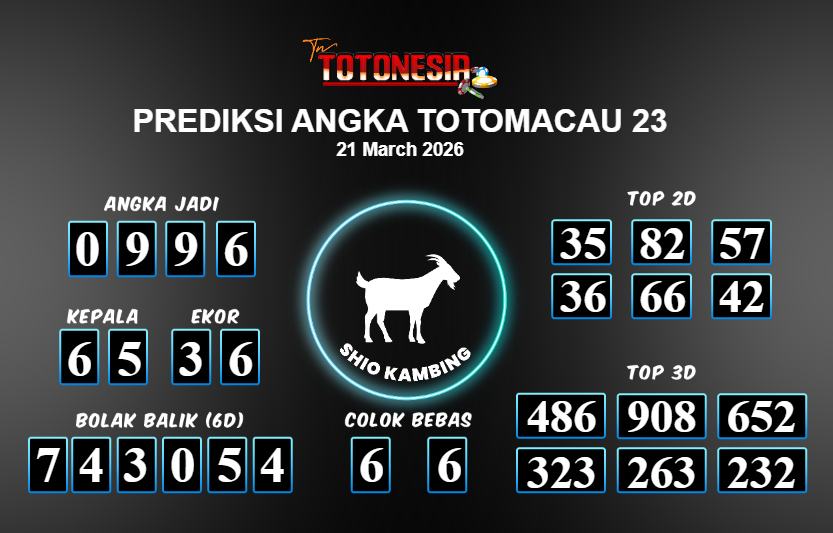 Toto Nesia : Bocoran Prediksi Togel TOTOMACAU 23 Tanggal 21 MARET 2026