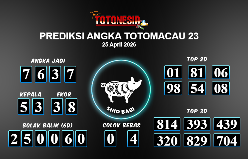 Toto Nesia : Bocoran Prediksi Togel TOTOMACAU 23 Tanggal 25 APRIL 2026