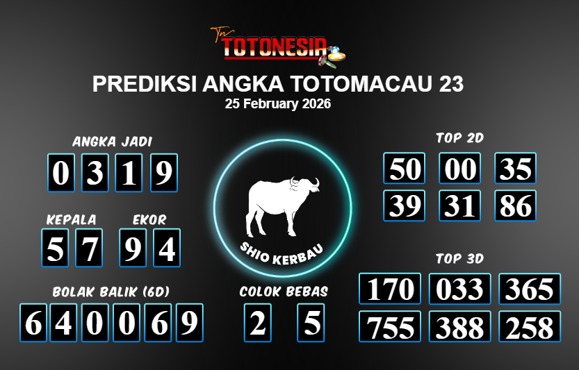 Toto Nesia : Bocoran Prediksi Togel TOTOMACAU 23 Tanggal 25 FEBUARI 2026
