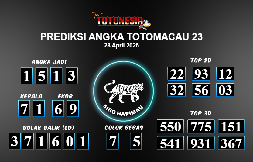 Toto Nesia : Bocoran Prediksi Togel TOTOMACAU 23 Tanggal 28 APRIL 2026