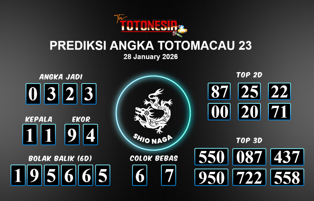 Toto Nesia : Bocoran Prediksi Togel TOTOMACAU 23 Tanggal 28 JANUARI 2026
