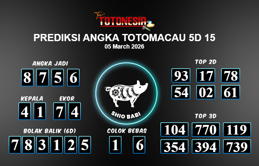 Toto Nesia : Bocoran Prediksi Togel TOTOMACAU 5D 15 Tanggal 05 MARET 2026