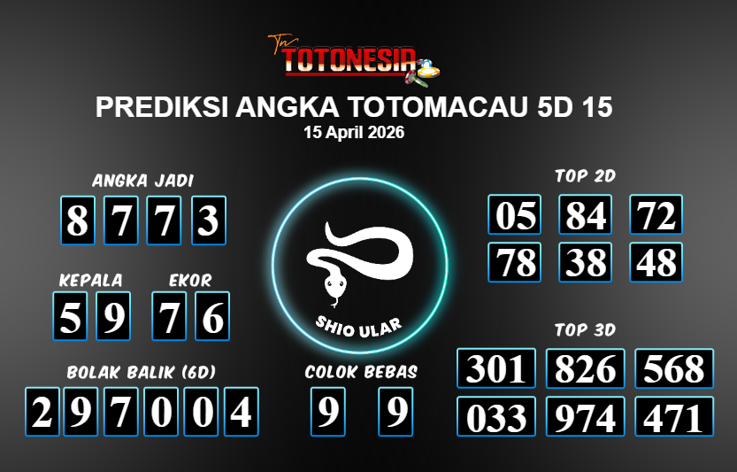 Toto Nesia : Bocoran Prediksi Togel TOTOMACAU 5D 15 Tanggal 15 APRIL 2026