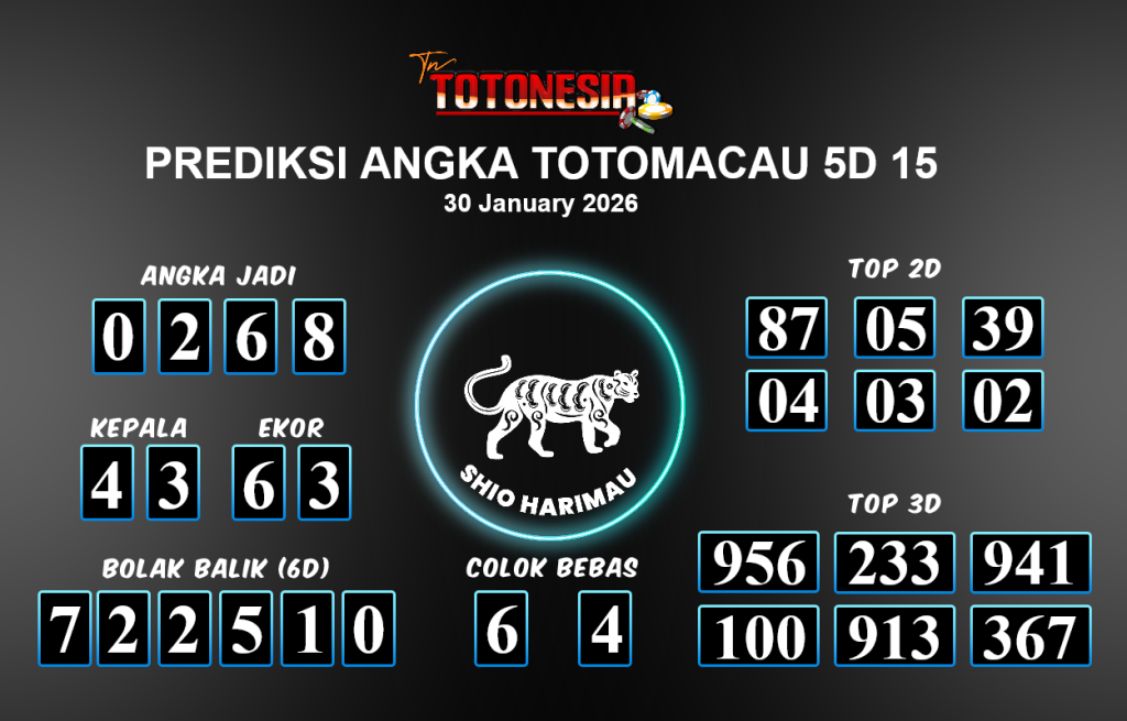 Toto Nesia : Bocoran Prediksi Togel TOTOMACAU 5D 15 Tanggal 30 JANUARI 2026
