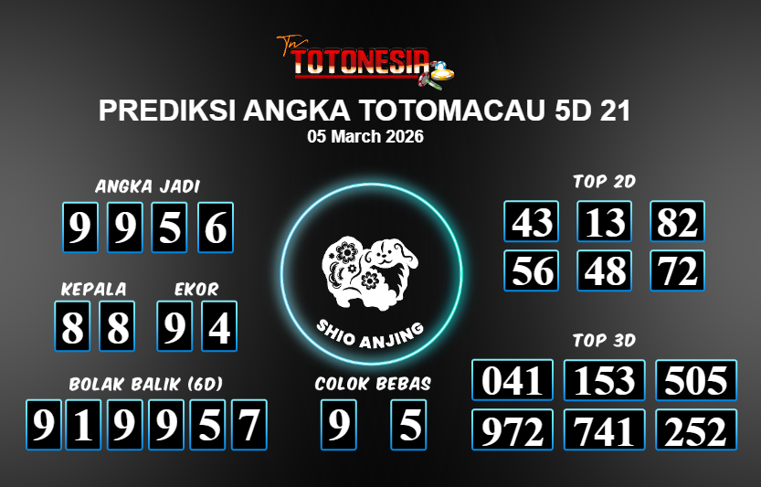 Toto Nesia : Bocoran Prediksi Togel TOTOMACAU 5D 21 Tanggal 05 MARET 2026
