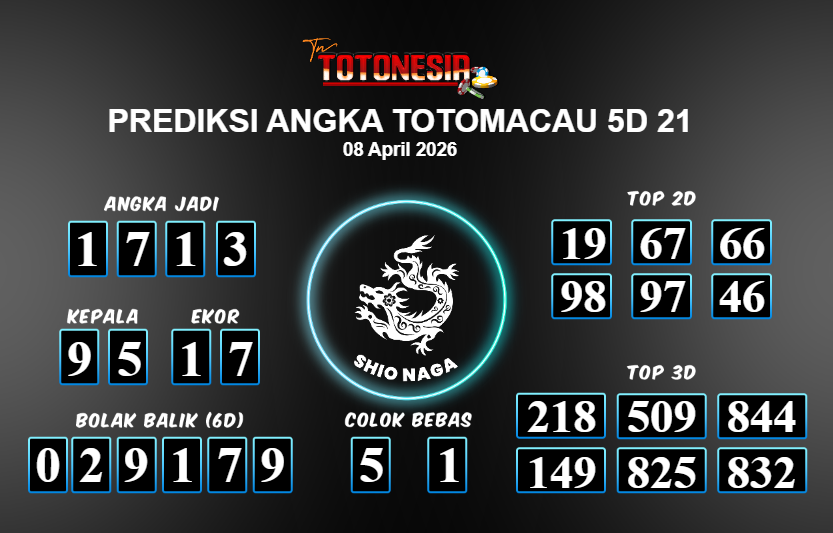 Toto Nesia : Bocoran Prediksi Togel TOTOMACAU 5D 21 Tanggal 08 APRIL 2026