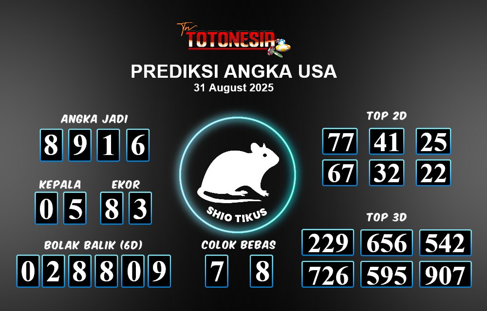Toto Nesia : Bocoran Prediksi Togel USA Tanggal 31 Agustus 2025