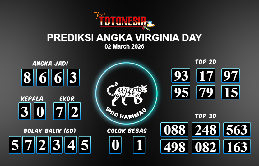 Toto Nesia : Bocoran Prediksi Togel VIRGINIA DAY Tanggal 02 MARET 2026