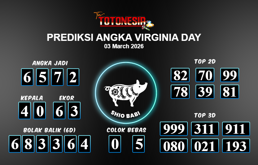 Toto Nesia : Bocoran Prediksi Togel VIRGINIA DAY Tanggal 03 MARET 2026