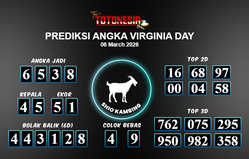 Toto Nesia : Bocoran Prediksi Togel VIRGINIA DAY Tanggal 06 MARET 2026