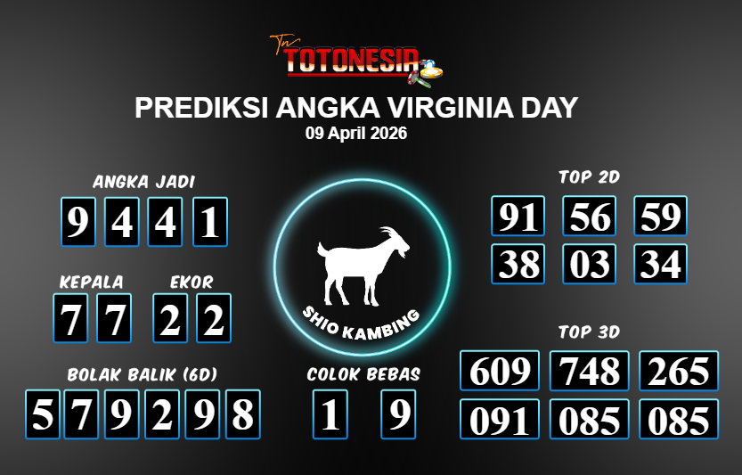 Toto Nesia : Bocoran Prediksi Togel VIRGINIA DAY Tanggal 09 APRIL 2026