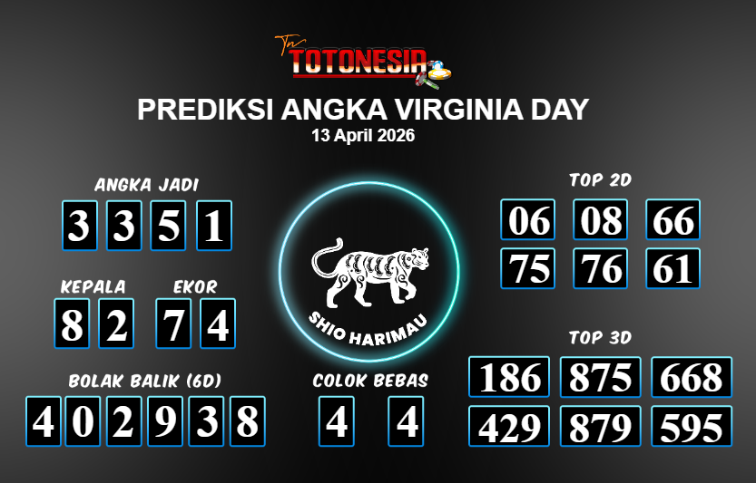 Toto Nesia : Bocoran Prediksi Togel VIRGINIA DAY Tanggal 13 APRIL 2026