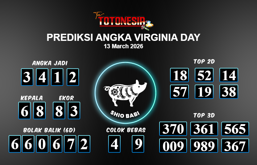 Toto Nesia : Bocoran Prediksi Togel VIRGINIA DAY Tanggal 13 MARET 2026