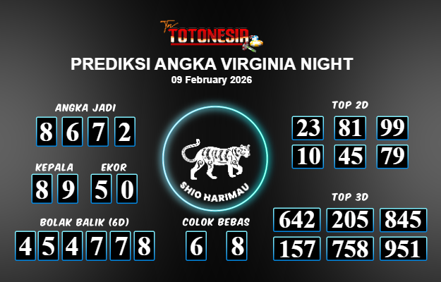 Prediksi VIRGINIA NIGHT adalah perhitungan nomor togel unggulan dari agen suhu togel yang menyajikan angka prediksi paling akurat, sehingga memberikan banyak keuntungan saat bermain di pasar togel VIRGINIA NIGHT . TotoNesia adalah prediksi dengan rasio kemenangan tertinggi di Indonesia. Sebagai penyedia togel yang dapat dipercaya, kami bertekad untuk memberikan ramalan togel yang handal dengan hadiah terbesarnya. Maka dari itu, jangan sampai terlewatkan prediksi bandar togel dengan hadiah terbanyak bet 100 dari pasar togel terbaik VIRGINIA NIGHT Daftar sekarang juga di bandar.