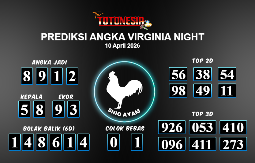 Prediksi VIRGINIA NIGHT adalah perhitungan nomor togel unggulan dari agen suhu togel yang menyajikan angka prediksi paling akurat, sehingga memberikan banyak keuntungan saat bermain di pasar togel VIRGINIA NIGHT . TotoNesia adalah prediksi dengan rasio kemenangan tertinggi di Indonesia. Sebagai penyedia togel yang dapat dipercaya, kami bertekad untuk memberikan ramalan togel yang handal dengan hadiah terbesarnya. Maka dari itu, jangan sampai terlewatkan prediksi bandar togel dengan hadiah terbanyak bet 100 dari pasar togel terbaik VIRGINIA NIGHT Daftar sekarang juga di bandar.