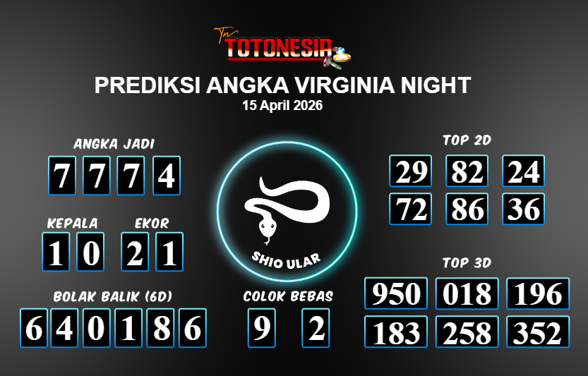 Toto Nesia : Bocoran Prediksi Togel VIRGINIA NIGHT Tanggal 15 APRIL 2026