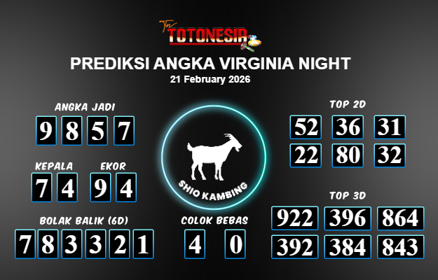 Toto Nesia : Bocoran Prediksi Togel VIRGINIA NIGHT Tanggal 21 FEBUARI 2026
