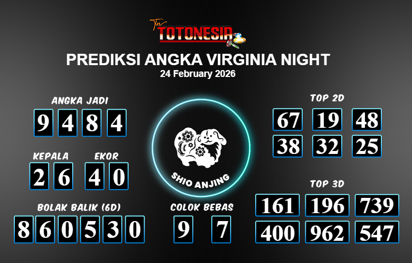 Toto Nesia : Bocoran Prediksi Togel VIRGINIA NIGHT Tanggal 24 FEBUARI 2026