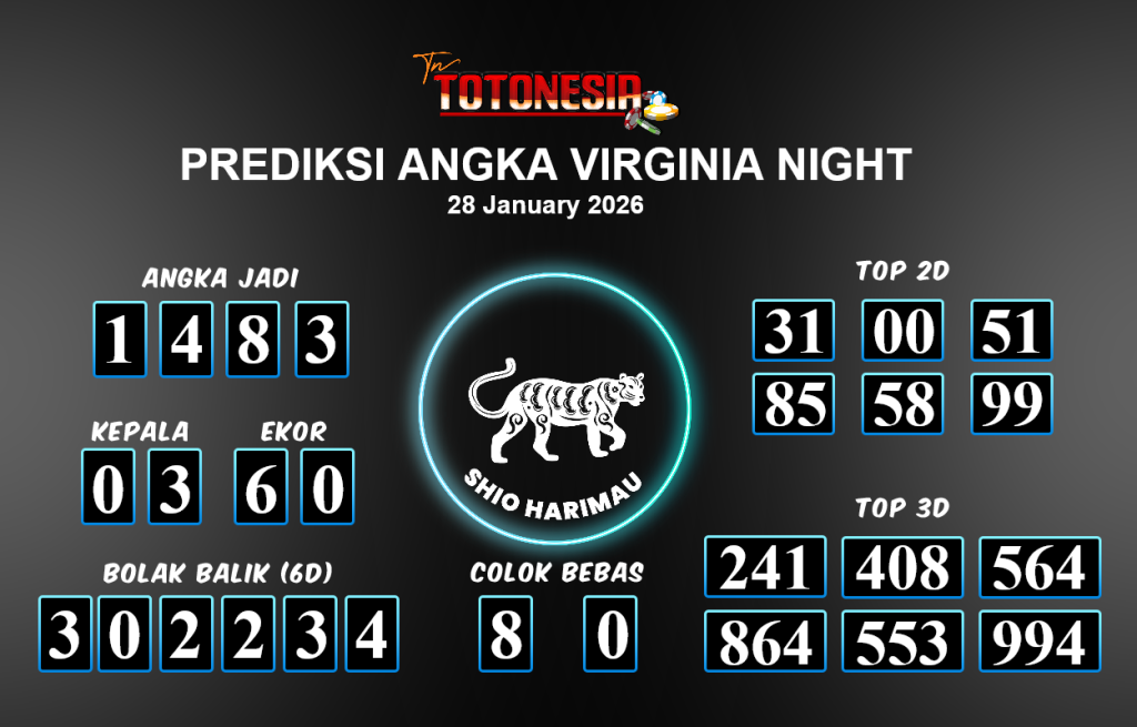 Toto Nesia : Bocoran Prediksi Togel VIRGINIA NIGHT Tanggal 28 JANUARI 2026