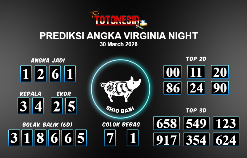 Prediksi VIRGINIA NIGHT adalah perhitungan nomor togel unggulan dari agen suhu togel yang menyajikan angka prediksi paling akurat, sehingga memberikan banyak keuntungan saat bermain di pasar togel VIRGINIA NIGHT . TotoNesia adalah prediksi dengan rasio kemenangan tertinggi di Indonesia. Sebagai penyedia togel yang dapat dipercaya, kami bertekad untuk memberikan ramalan togel yang handal dengan hadiah terbesarnya. Maka dari itu, jangan sampai terlewatkan prediksi bandar togel dengan hadiah terbanyak bet 100 dari pasar togel terbaik VIRGINIA NIGHT Daftar sekarang juga di bandar.